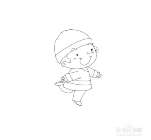 最后我们再画出女孩的两条腿,然后再画出女孩的脚部,这样跳舞的女孩就画好了,如图所示: