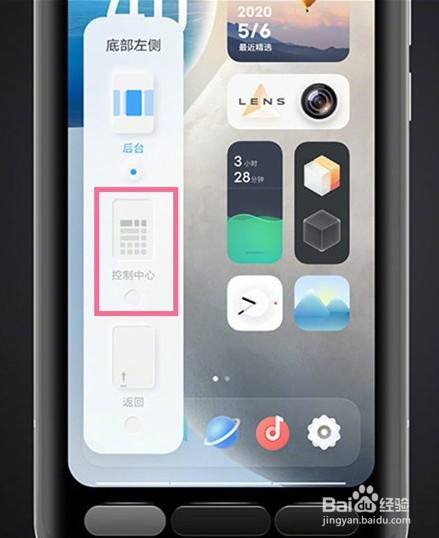 5、点击底部左侧或右侧按钮即可设置上滑控制中心。