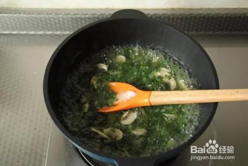 6、等锅里的汤煮开后,转中火,再煮一会,就可以加盐和鸡精,搅匀入味后就可以关火啦。
