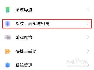 1、在手机设置菜单中点击【指纹、面部与密码】。