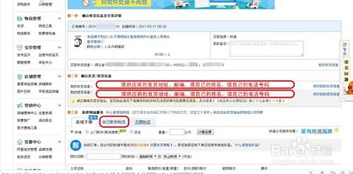 1.点击“修改我的发货信息“,修改为:供应商的发货地址+邮编+自己的姓名+自己的电话号码;2.点击”修改我的发货信息”,修改为:供应商的发货地址+邮编+自己的姓名+自己的电话号码;3.点击“自己联系物流”