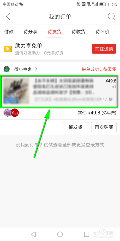 这是就能看到待发货的订单了,点击该订单,进入到订单页面中。