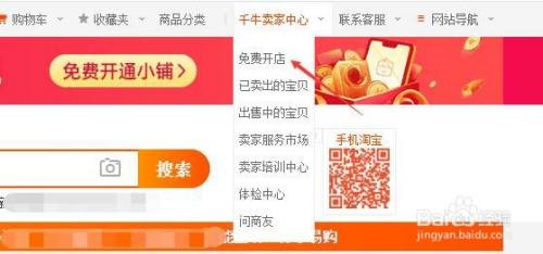 在电脑上双击打开淘宝,然后把鼠标放在【千牛卖家中心】上,选择【免费开店】。