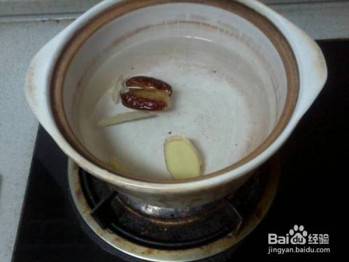 将去核的枣和姜片放入砂锅,加入适量的清水