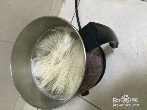 2、小编准备是买来的熟肉,如果你是生的鸭肉,可以先将鸭肉放入锅里面煮。由于小编是熟的,所以方法有些不一样,就先放面条了。先将面条放入锅中进行煮开。