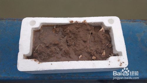 如图,在泡沫箱里面加上适量营养土,超过箱子一半即可,不能太满。