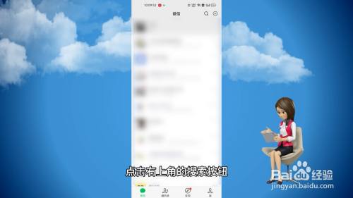来到微信主页页面,点击右上角的搜索按钮,搜索行程码查询。