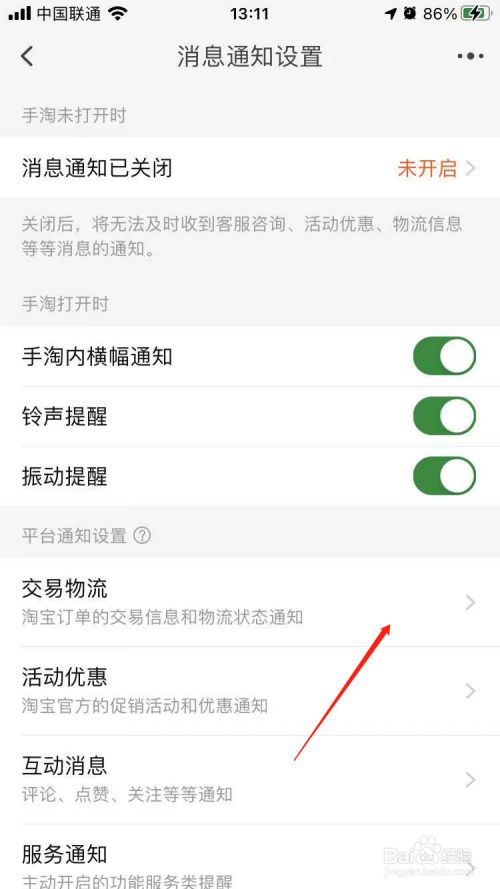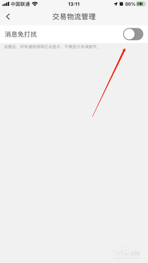 在交易物流页面,找到消息免打扰选项即可进行设置。