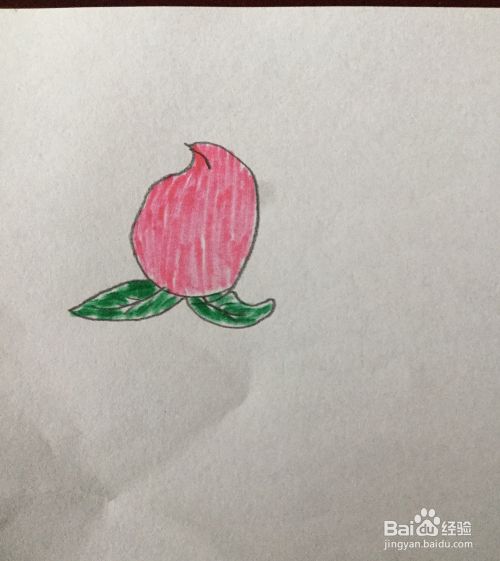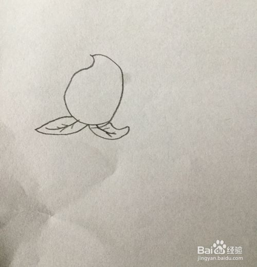 接着在水蜜桃下面画出一片叶子。