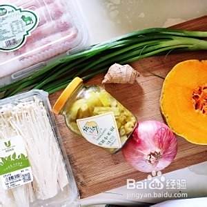 然后这个量大概够4个人吃,准备材料:肥牛1盒(这个方法也能做肥羊)、南瓜1片、洋葱1个、金针菇1盒、姜6片、泡椒8个、葱1根准备下一步