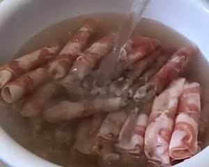 然后用煮开的热水烫肥牛/肥羊,烫到变色后,捞出沥干水份。烫的水要倒掉哈,用煮开的热水烫肥牛/肥羊,烫到变色后,捞出沥干水份。烫的水要倒掉哈