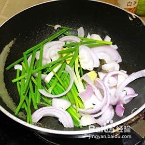 然后热油,下姜、葱和洋葱,爆炒2-3分钟出香准备下一步