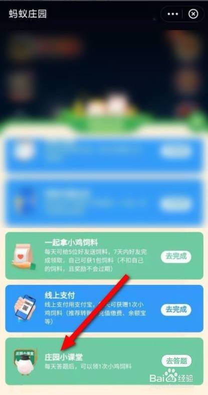 打开支付宝,点击蚂蚁庄园里面的领饲料。