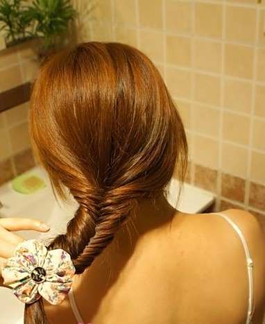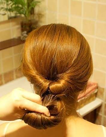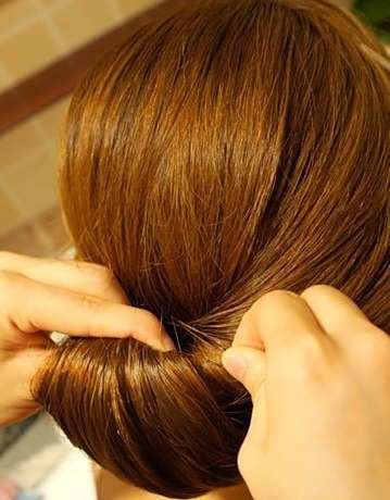 4如图手示把头发向内向上卷。