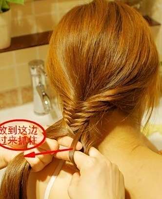 2接着在半的头发取出一小点,放到另外一边去抓紧。