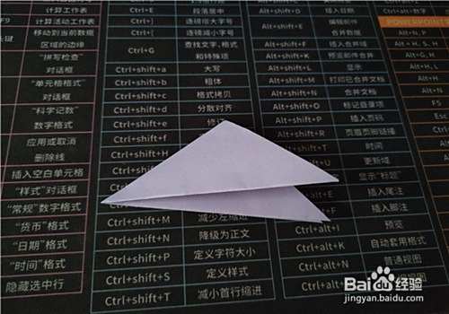 然后,我们将所得三角形再次沿中位线对折,如图所示。(共对折三次)