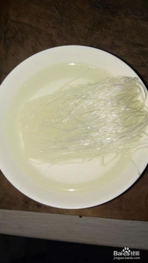 将粉条放到热水中泡软,捞出,切成碎末