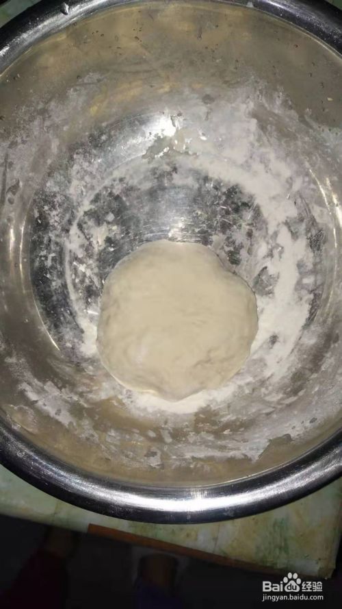 将面粉倒入盆中,加入适量的温水揉成面团,醒发一会。