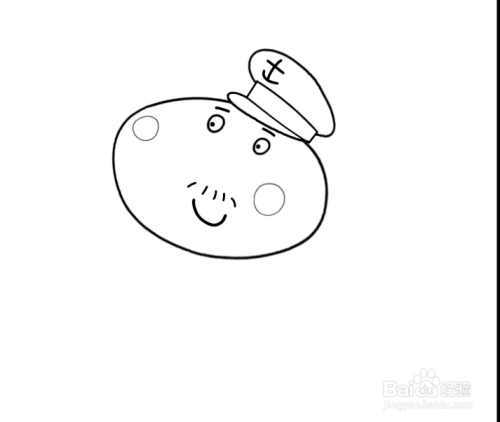 如图,接着画出狗船长的头部轮廓。