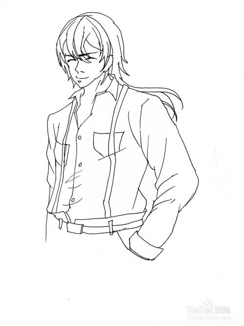 其次,确定脸部轮廓,画出耳朵和嘴巴。