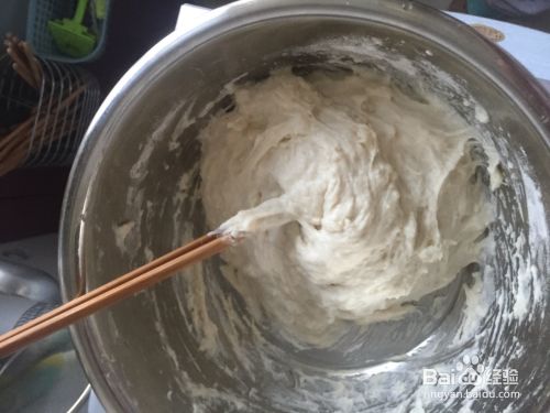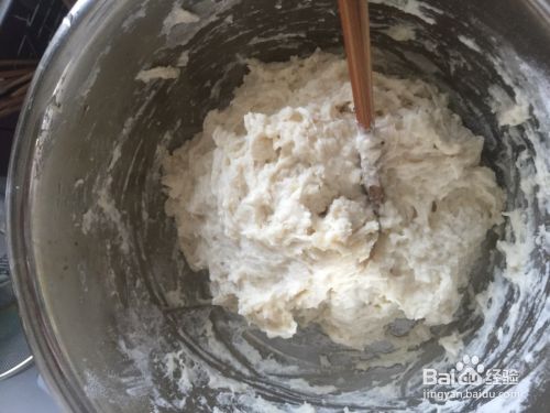面粉放入盆中,用六十度水调和面团,在醒十分钟。