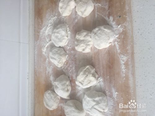 将醒好的面团放在案子上搓成条,在切成剂子,按成圆形。