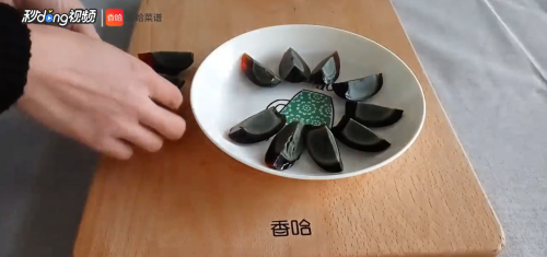 切好的皮蛋摆入盘中。