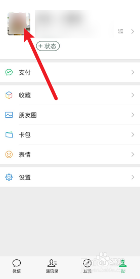 打开手机上的微信,在我页面,点击个人头像