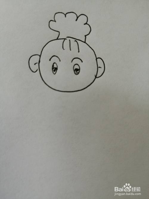 第三步,然后继续画出可爱的小宝贝的两只黑色的大眼睛,小宝贝眼睛又大又圆。