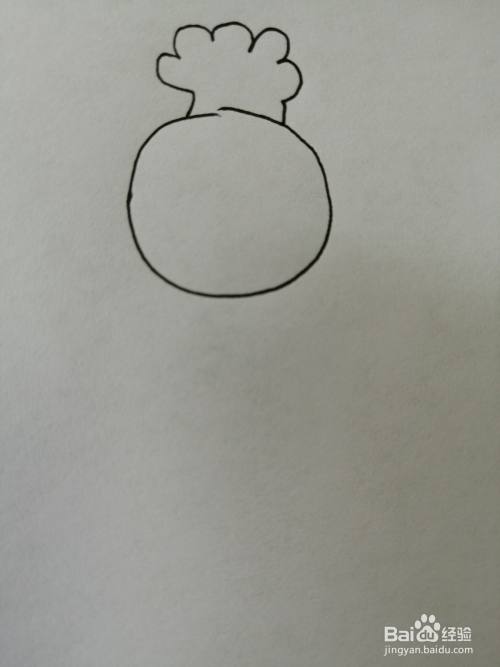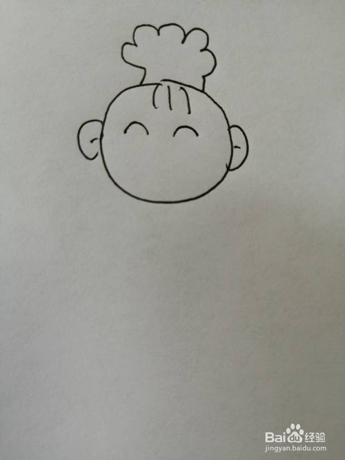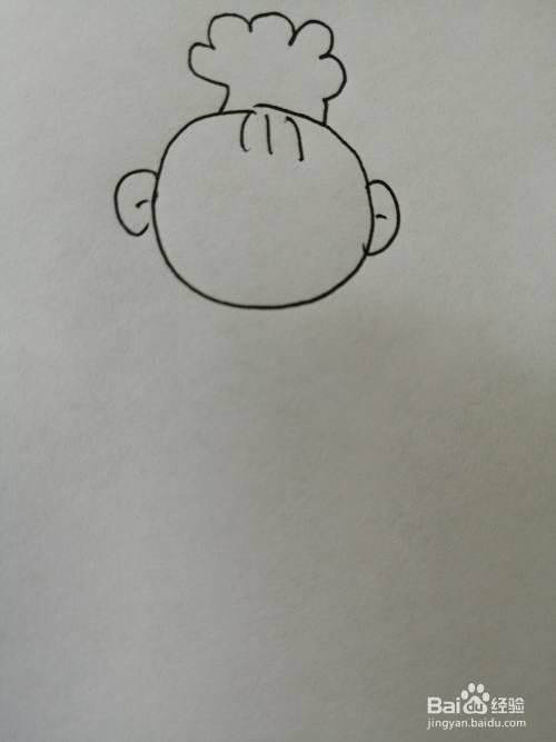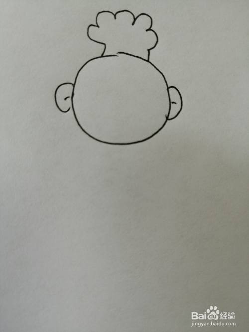 第一步,我们先把可爱的小宝贝的头部轮廓画出来,注意头顶头发和两只耳朵的画法。