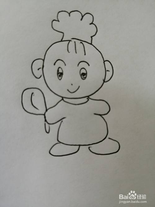 第七步,最后把可爱的小宝贝的手上的小勺子画完整。可爱的小宝贝就画好了。
