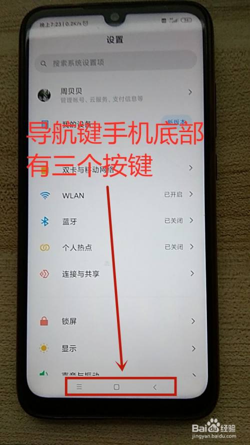 第五步,我们选择导航键模式,手机底部下面有三个按键,下图。