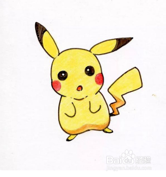 7、用黄色彩铅画皮卡丘的身体,用红色画腮红和嘴巴的颜色,完成。