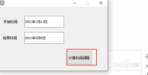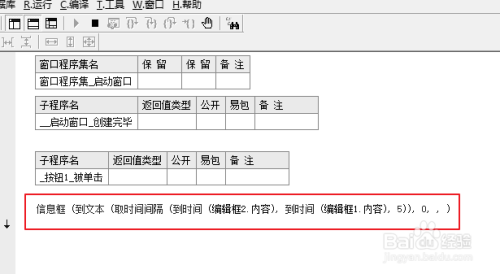 信息框 (到文本 (取时间间隔 (到时间 (编辑框2.内容), 到时间 (编辑框1.内容), 5)), 0, , )