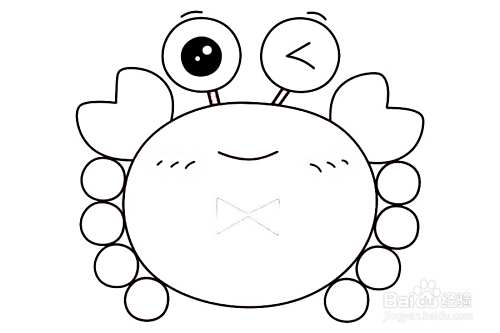 今天我们来画卡通可爱螃蟹简笔画,简单好画,下面看看具体的画法。