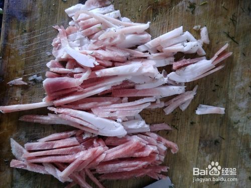 茴香可以选择冻的,切块备用、猪肉切片后切条在切块准备待用