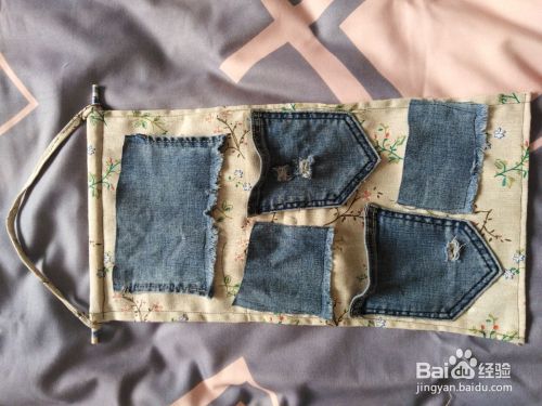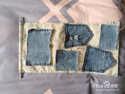裁剪牛仔布块和挂带用布,用其他布料也可以,牛仔布有点韧性放东西底布不会被撑变形