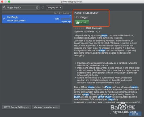 进入到Browse Repositories界面之后会显示HotPlugin的详细信息,评分、发布时间,详细的描述信息以及Install,点击右上角的Install开始进行安装,如下: