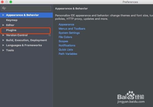 打开Preferences首选项之后,在左侧功能栏列表找到Plugins,部分版本位置可能不一样,仔细找下即可,如下: