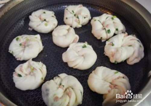 轻轻拉长扭成麻花。两边头尾相接成圆饼状。锅底抹一层薄薄的油,把生饼逐一放到锅里,盖上盖子发酵。
