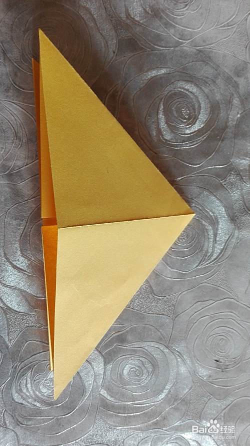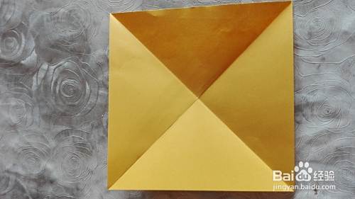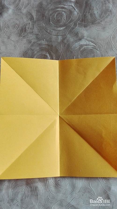 第三步:在原有基础上将纸再对折一次,打开。如图。