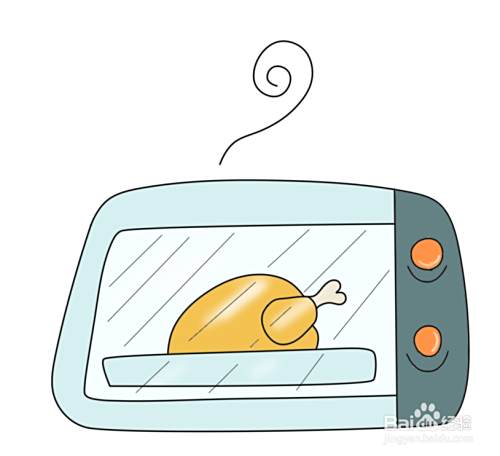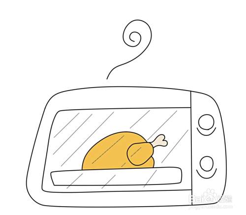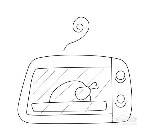 用斜线在开口轮廓内画出玻璃门的效果,烤箱顶部用曲线画出飘气味的符号。