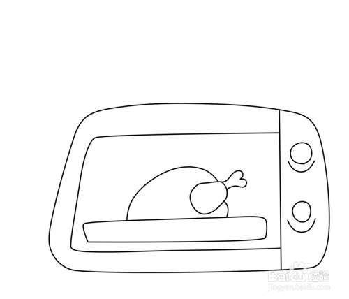 在烤箱开口内画出箱内的托盘和鸡腿。