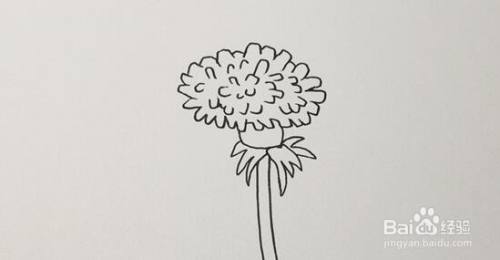 然后在花朵下方画出它的4片长叶子,画出锯齿
