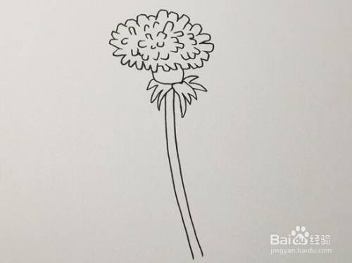 首先在纸张上画出蒲公英的花朵,用铅笔勾勒出外形