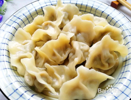 第五步,做好的饺子逐个下入锅中开始煮,待将饺子煮熟透后,即可捞出来,蘸着个人喜欢的料汁便可享用了。