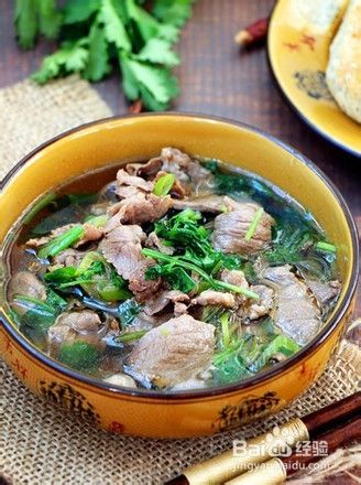 食材:羊肉片、香菜、葱姜