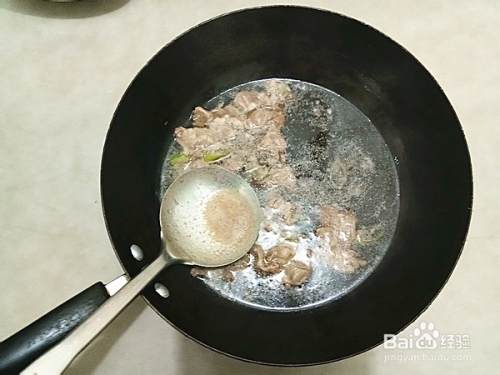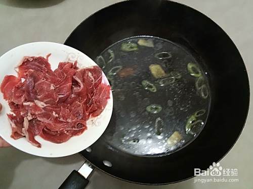 加入酱油,大火烧沸后放入羊肉片汆烫