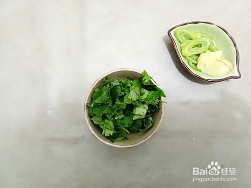 香菜洗净切成段,从切葱花、姜切片