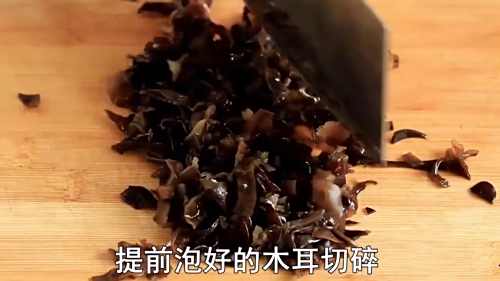 2提前泡好的木耳切碎。